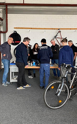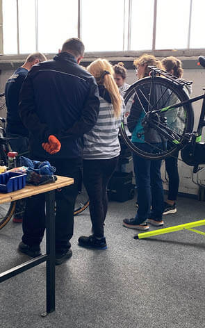 Ja, gerne! Wir üben direkt an Deinem Rad. In der Werkstatt stehen Dir aber auch diverse Übungsmaterialien wie Schläuche, Ketten, Laufräder und vieles mehr zur Verfügung.